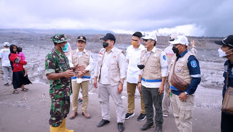 TIMES Garut/Ketua Dewan Penasehat Partai Gerindra DPD Jawa Timur, Bambang Haryo Soekartono bersama DPC Partai Gerindra Surabaya, Lumajang dan Malang saat meninjau dan menyerahkan bantuan Bencana Erupsi Gunung Semeru.Foto Partai Gerindra Jatim