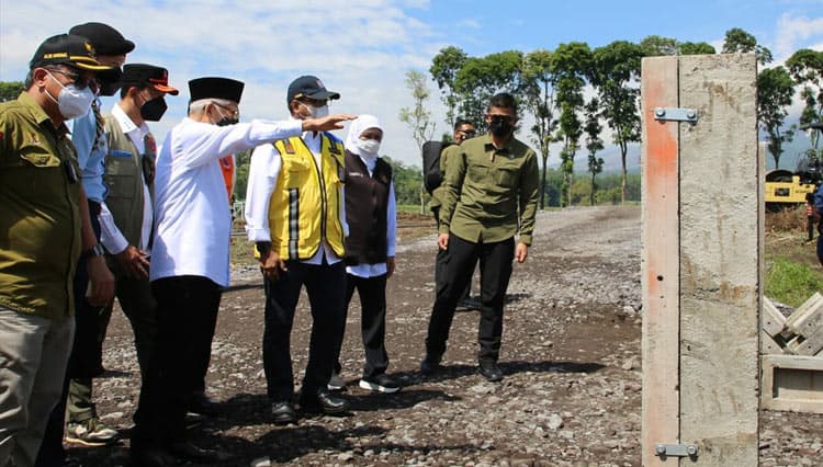 TIMES Garut/Sekjen PUPR RI Mohammad Zainal Fatah dampingi Wapres RI KH Ma'ruf Amin meninjau lokasi pembangunan Hunian Sementara (Huntara) bagi korban terdampak erupsi Gunung Semeru di Desa Sumbermujur, Kecamatan Candipuro, Kabupaten Lumajang.